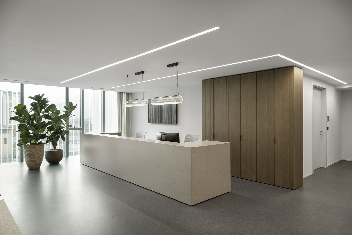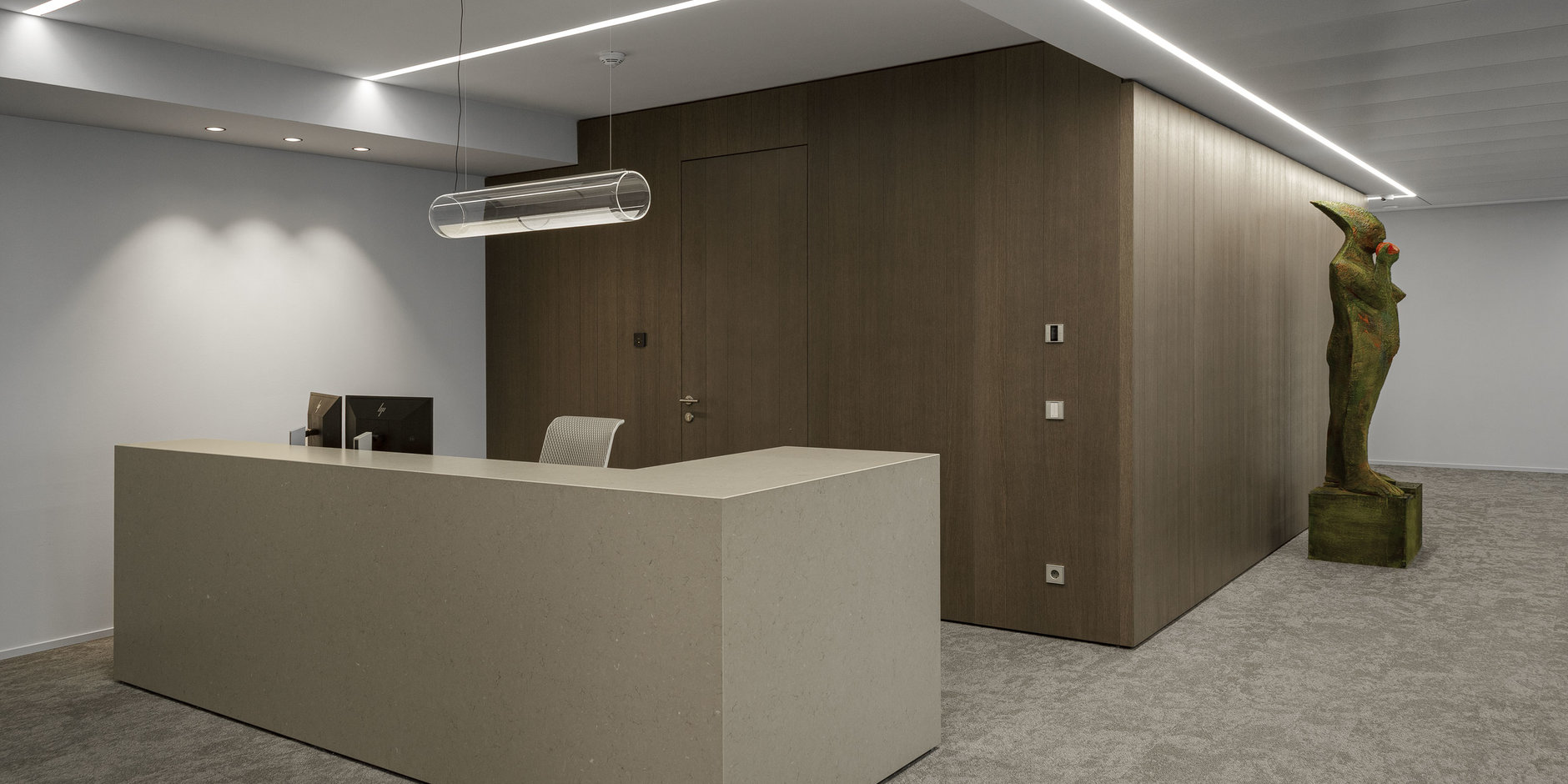 In the heart of Bozen, at the client’s request, four floors and over 4,000 m² of office space have been created in a timeless, comfortable ambience. The requirement was to meet both the technical and functional needs of modern working methods, as well as the requirements of a pleasant working atmosphere. The corporate values – quality, efficiency and a down-to-earth approach – were therefore incorporated into the conceptual development of the premises and are reflected by clear forms, colours, materials and, last but not least, the right light.