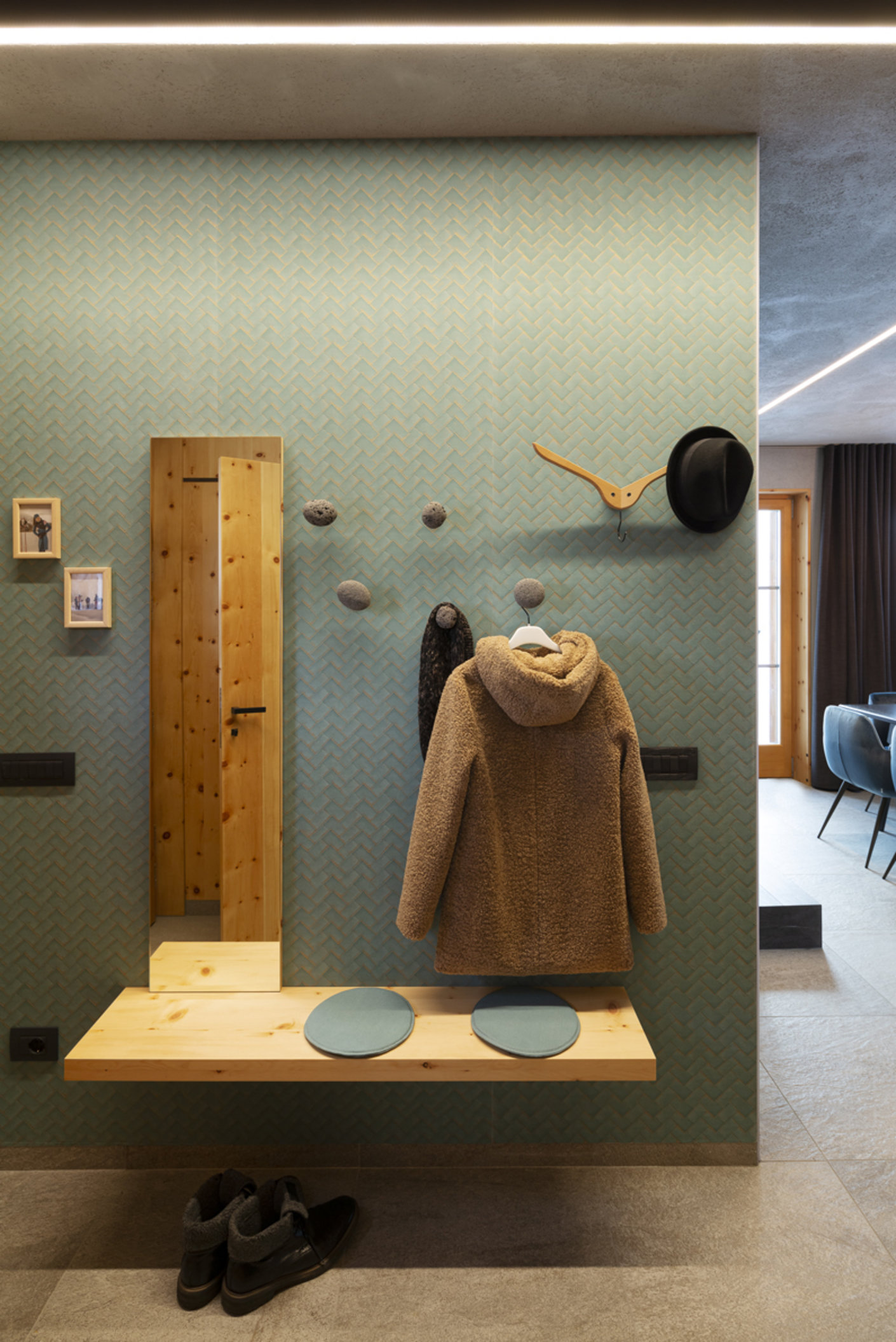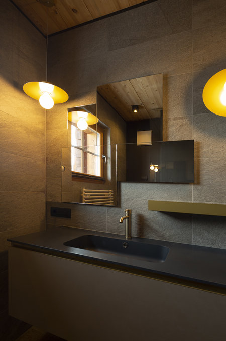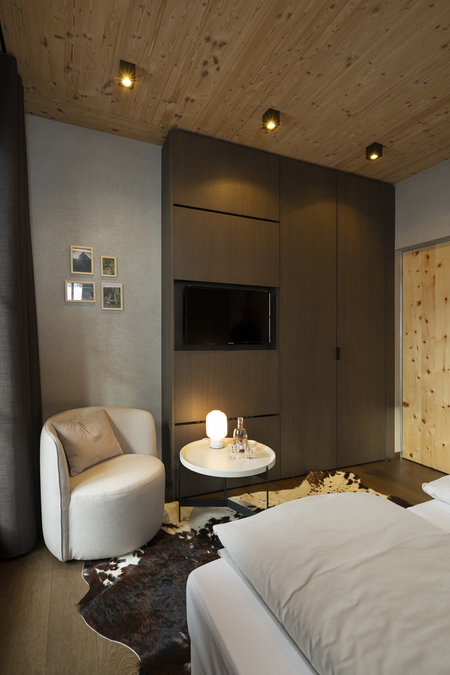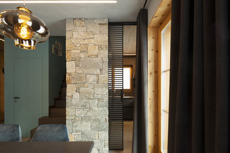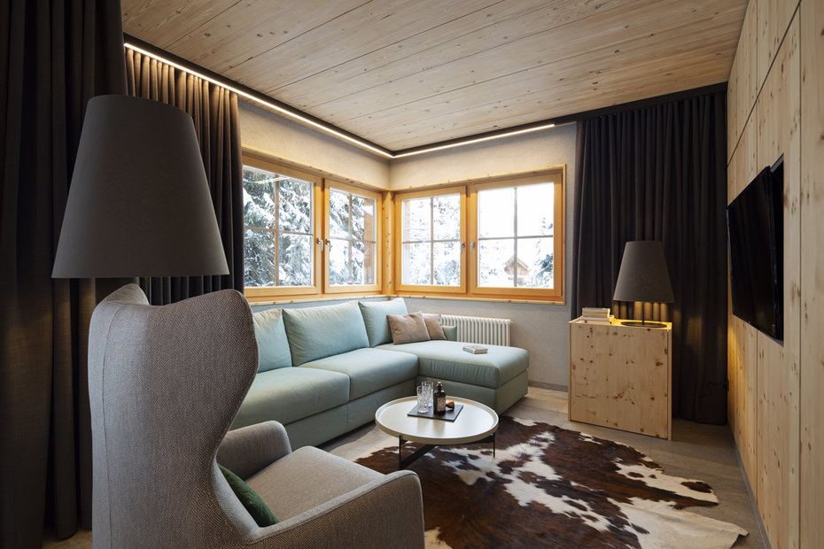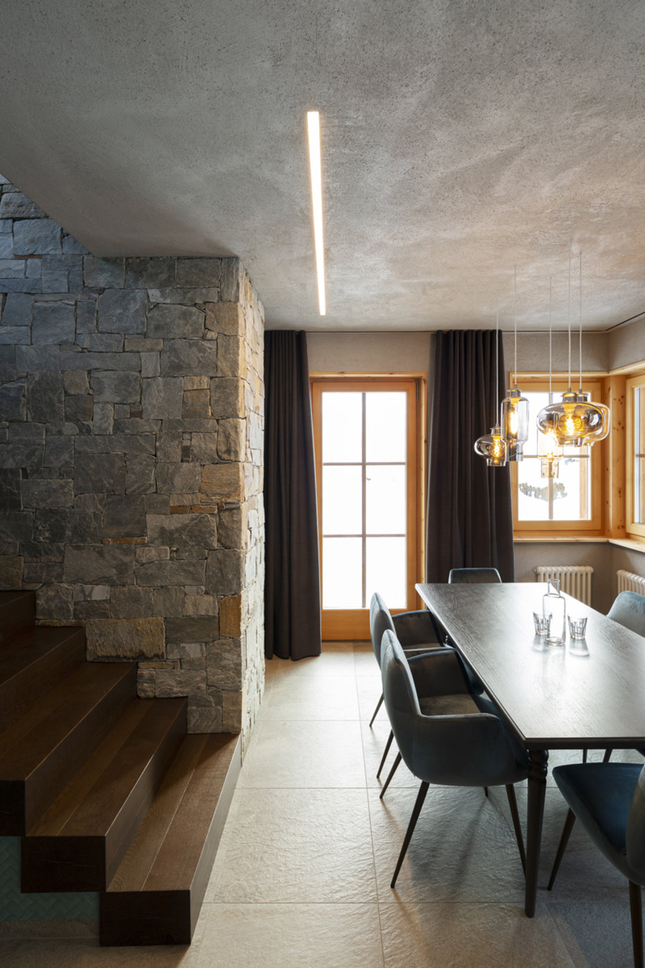Eine traditionelle, rustikale Hülle und natürliche Materialien wie Holz und Naturstein als raumbildende Elemente. Die Erinnerung an vergangene Zeiten, an das Ursprüngliche sollte beibehalten werden: Im Chalet verbreiten feine Materialien und zeitgemäße Möbel, kombiniert mit trendigen Farben, ein modernes Wohngefühl. Komfort mit aktuellster Technik war dabei mit eine Voraussetzung.
