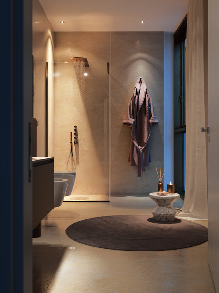 Die konzeptionelle Ausrichtung für die stilistische Gestaltung der Wohneinheiten in den Superior- und Premiumlagen wurde ebenfalls von ROOM2 übernommen. Hierbei wurden die Raummaterialien wie Holzfußböden, Fliesen, Wandmaterialien und Farben sowie Türen und Raumtrenner definiert. Darüber hinaus erfolgte die Auswahl von Badmöbeln und Armaturen sowie die Entwicklung des Lichtkonzepts. In enger Zusammenarbeit mit Architekten und Ingenieuren wurde die Materialauswahl von ROOM2 nahtlos in das Gesamtprojekt integriert.